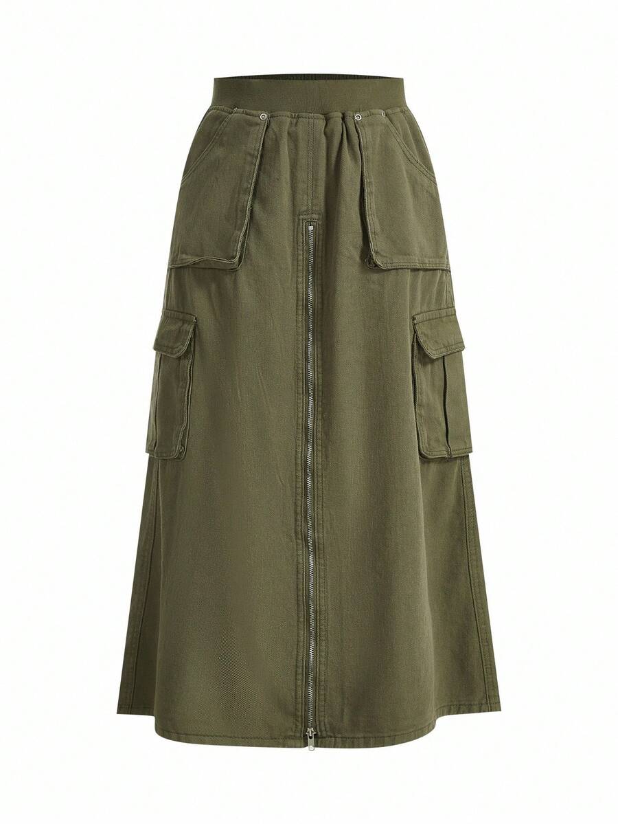 SHEIN x PRISCILA & JIMENA Grunge Punk Gonna di jeans con chiusura lampo e tasche con patta, per la scuola
