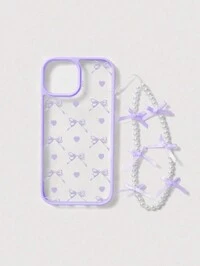 Kawaii Cover per telefono decorata con fiocchi a forma di cuore viola, design minimalista, compatibile con serie iPhone 12/13/14