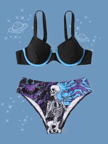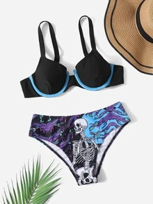 SadSkelly Bikini Push Up Con Stampa Scheletro Di Street Life
