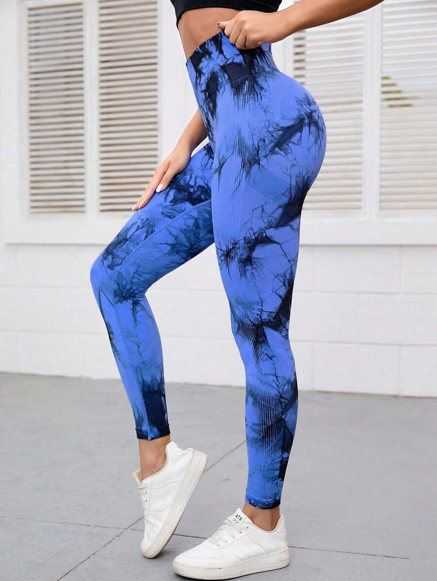 Leggings sportivi senza cuciture, morbidi e con effetto tie-dye, pantaloni da yoga per donne