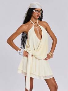 Abito mini con schiena scoperta e strati in chiffon, stile vacanziero