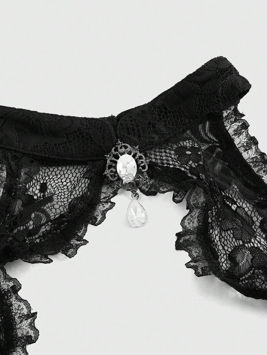 Goth Top corto con scollo a spalla bassa, maniche a campana e dettagli in pizzo, in stile gotico e da palazzo