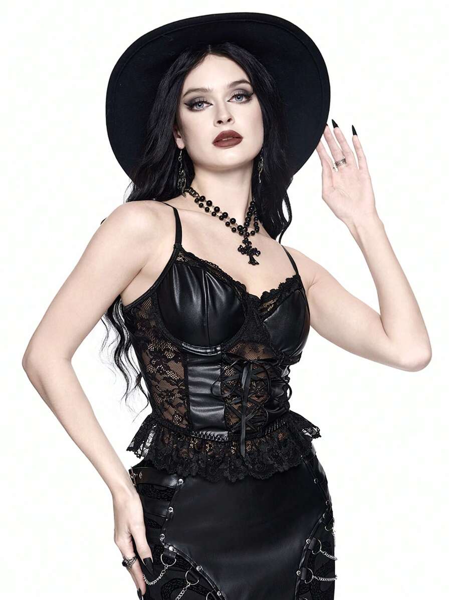 Goth Canotta gotica in stile sexy con inserti in pizzo e
