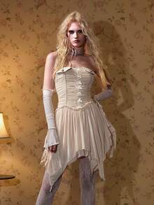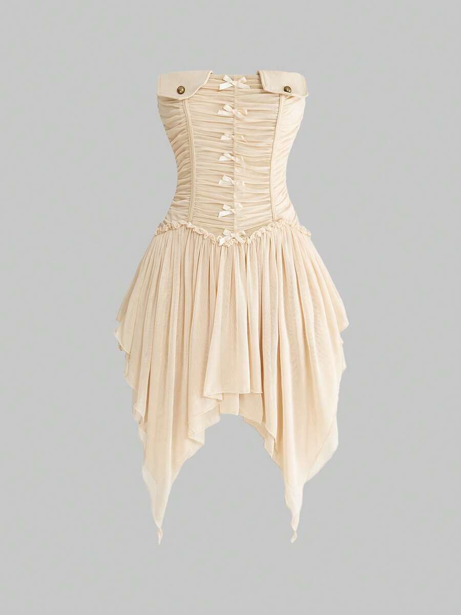 Abito mini asimmetrico con arricciature e fiocco sexy per donne