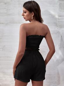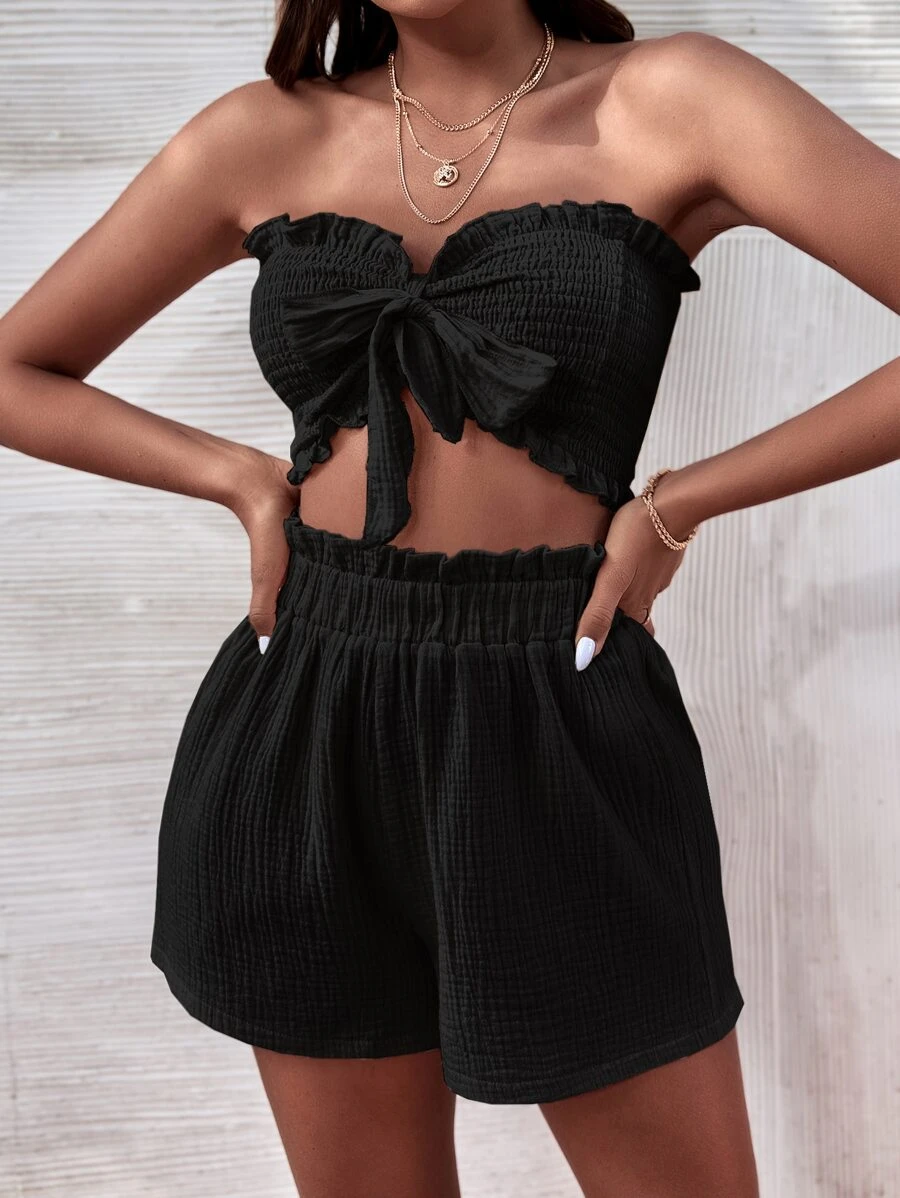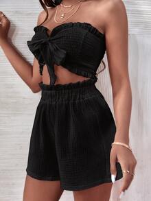 Top tubo arricciato arricciato nodo frontale & shorts vita a volant sovrapposti