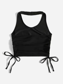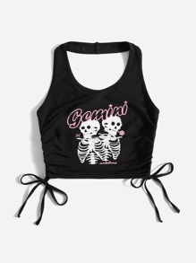 Top con scollo all'americana scheletro con grafica lettera con coulisse