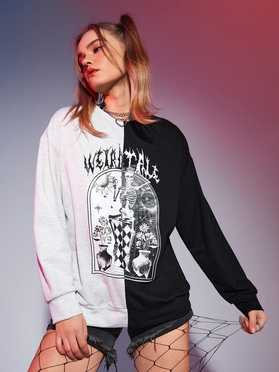 Felpa cranio & con grafica floreale color block