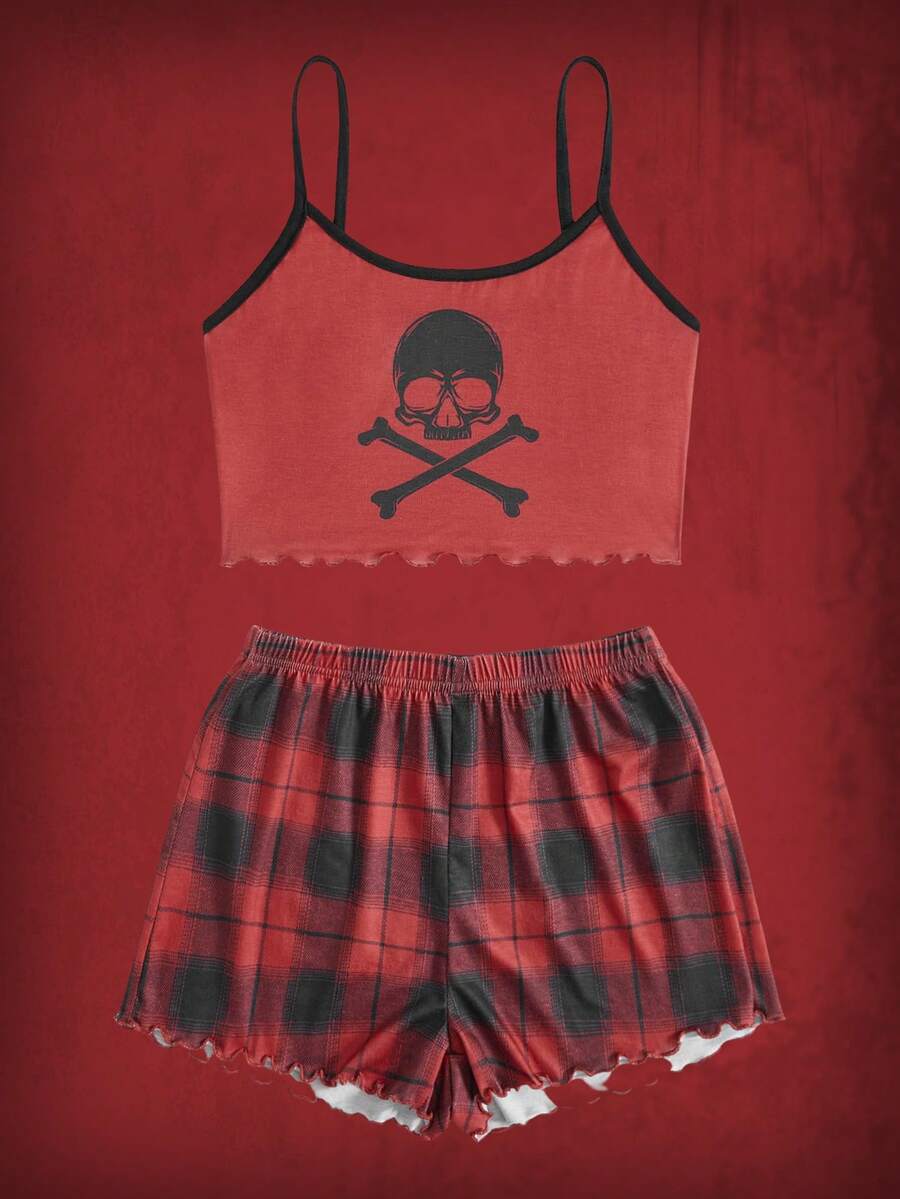 Grunge Punk Set pigiama con grafica cranio a quadri orlo lattuga