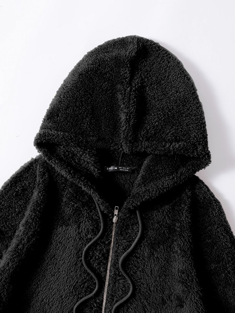 Giacca teddy con zip con cappuccio con coulisse con tasca obliqua