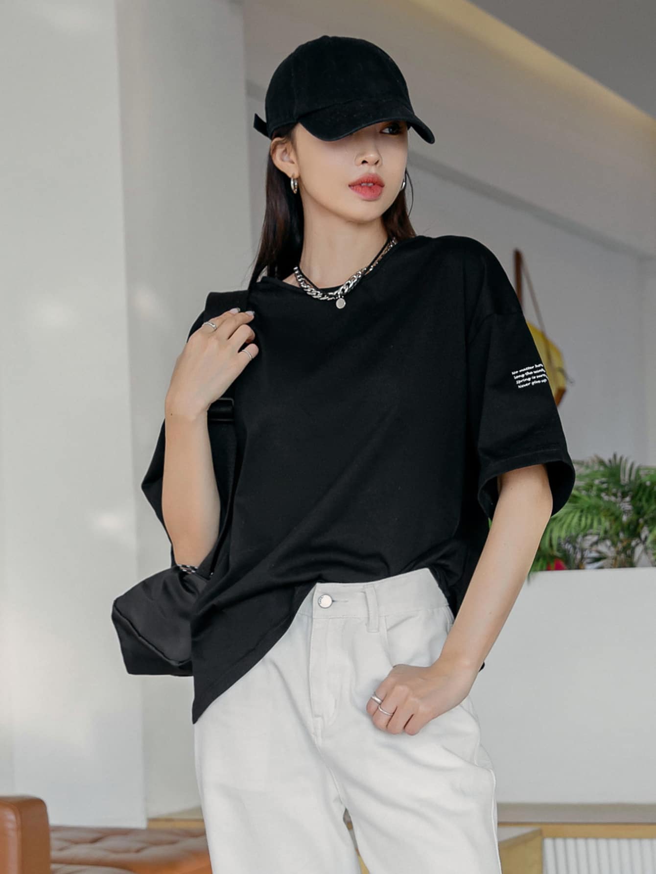 T-shirt A Spalle Scoperte Con Grafica E Slogan
