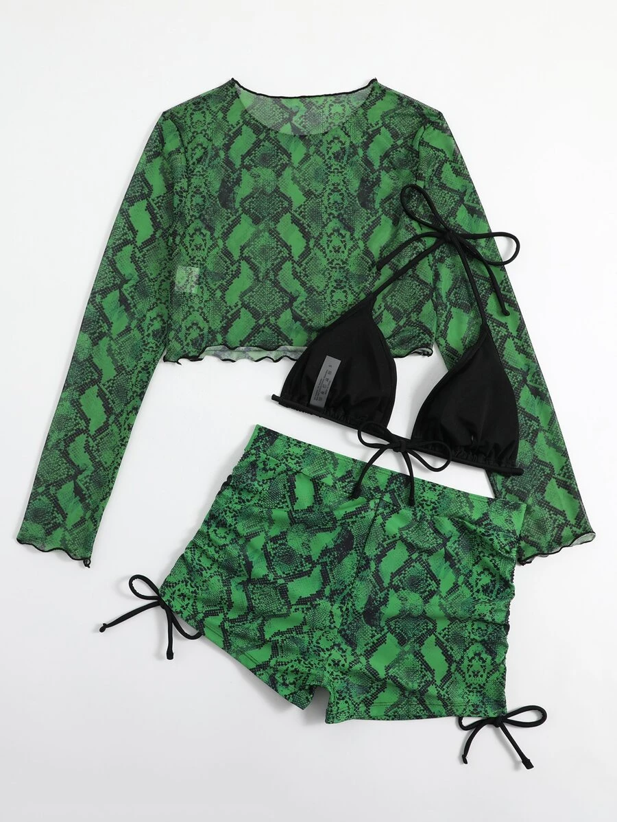 Insieme Bikini Con Stampa Serpente Per Spiaggia Estiva E Copertura Abbinata