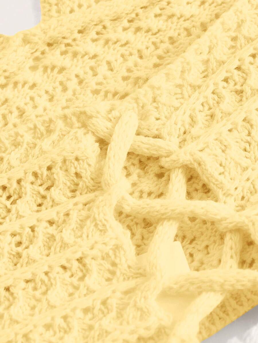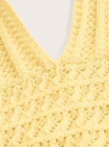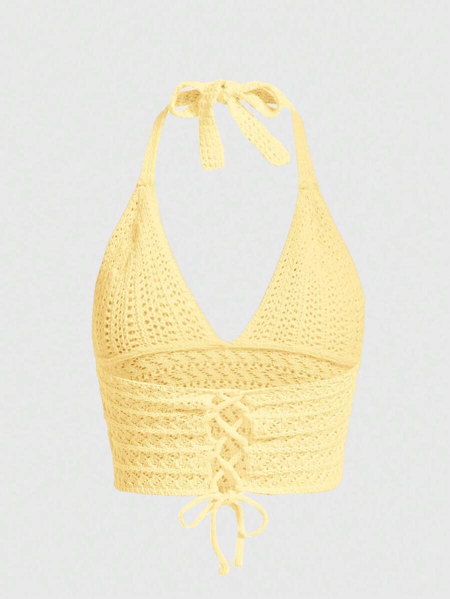 Top casual lavorato a maglia a uncinetto con collo alla halter e schiena scoperta, tinta unita