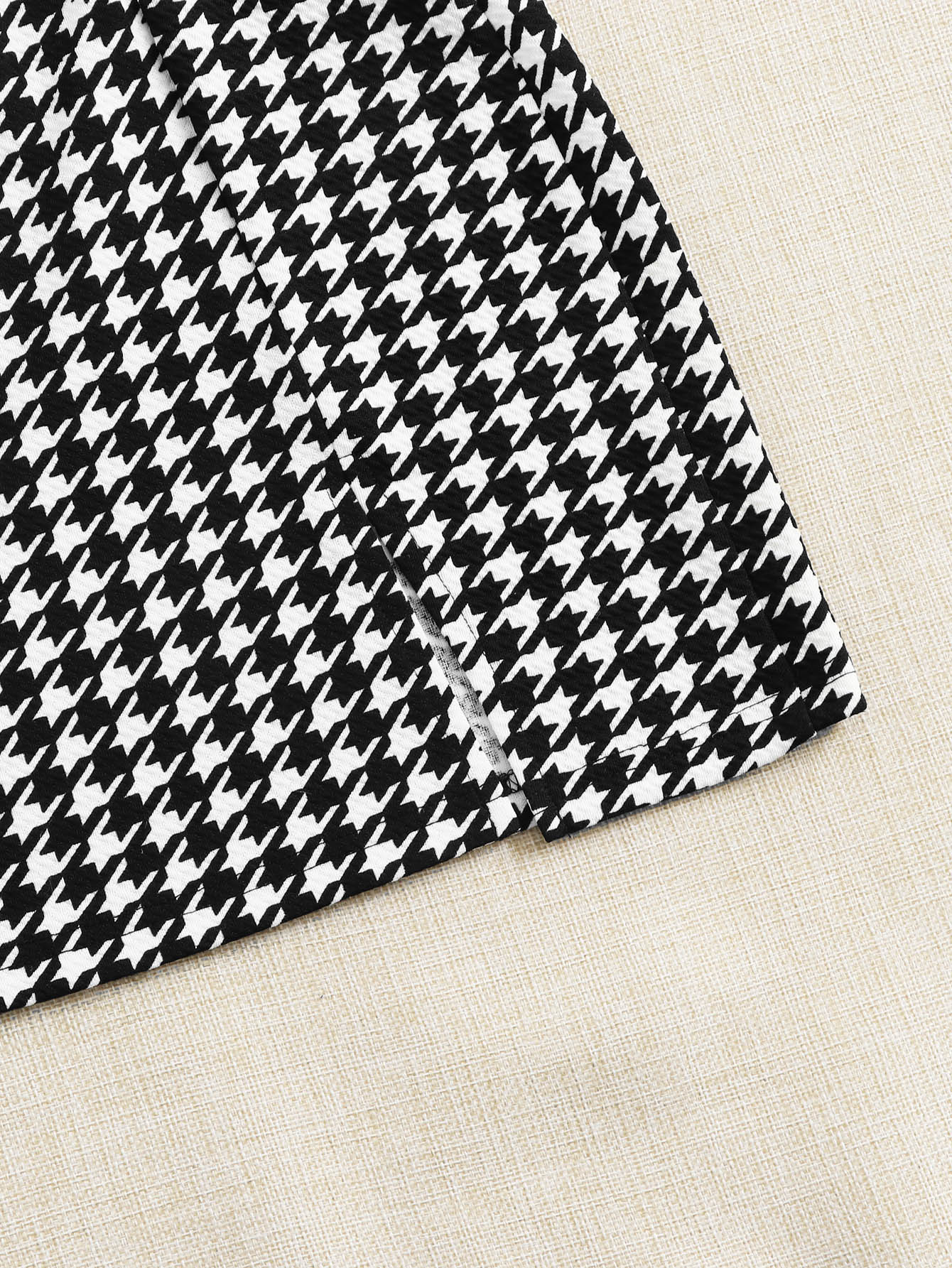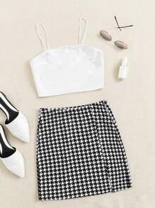 Set top crop con bretelle e Gonna a fessura pied de poule