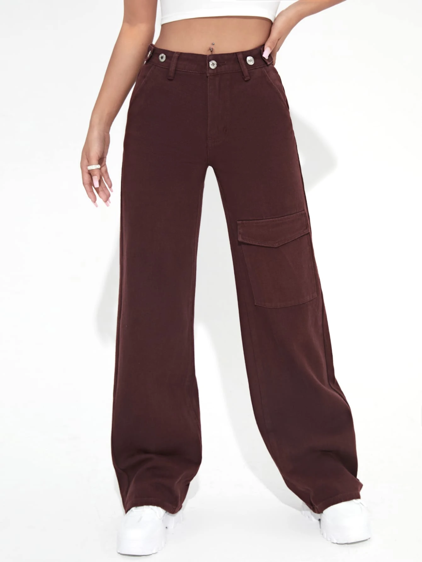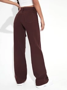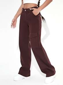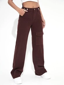Jeans monocolore tasca con patta Pantaloni larghi