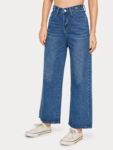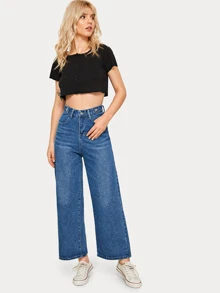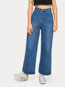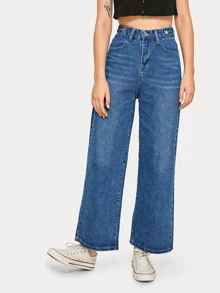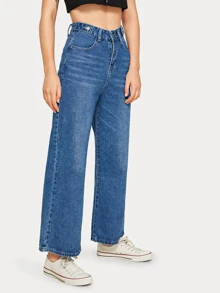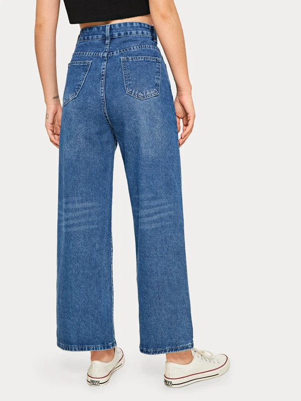 Jeans mom monocolori con gamba ampia e vita alta