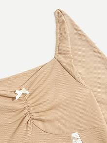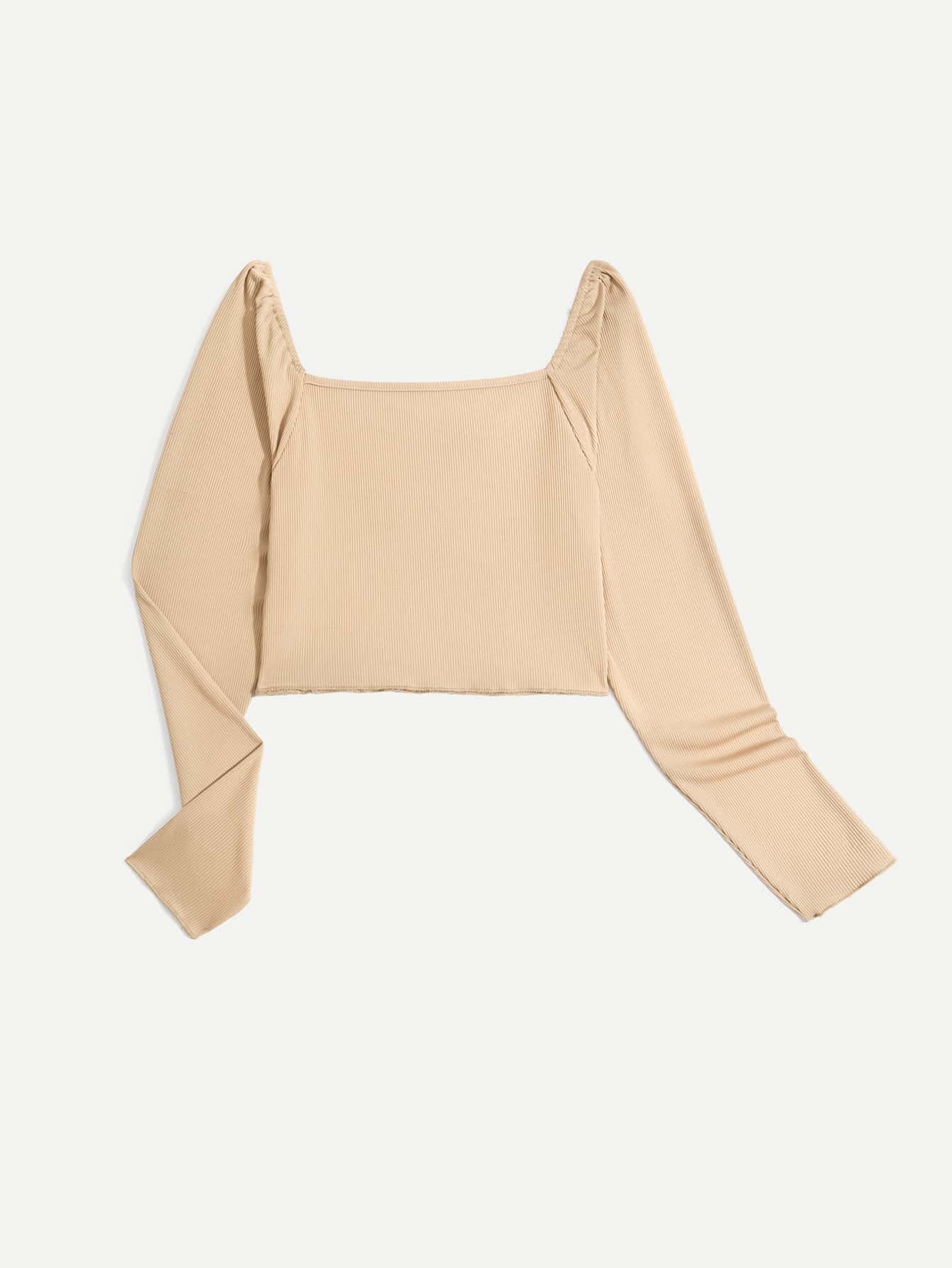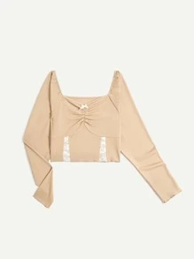 Top corto monocolore con orlo in pizzo con collo quadrato