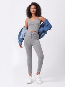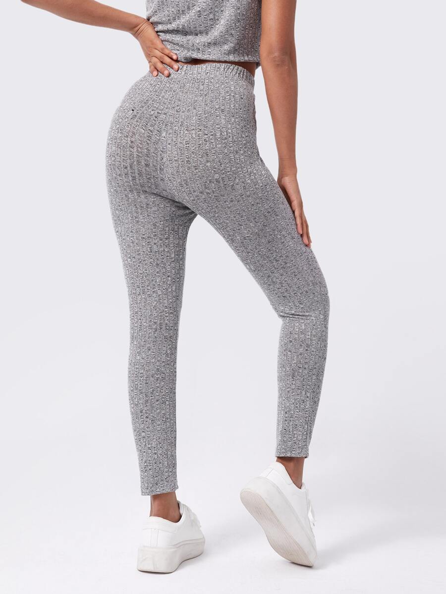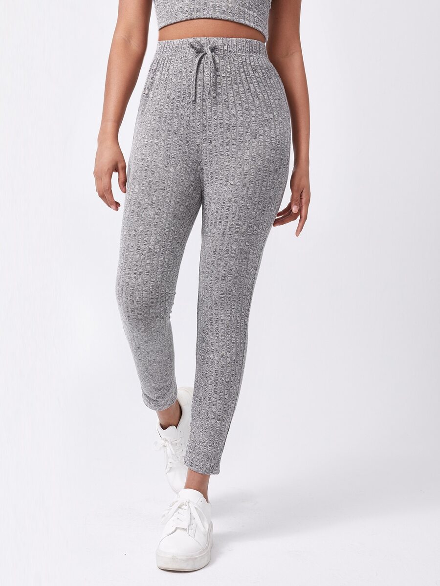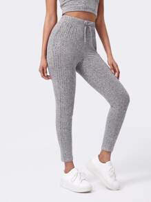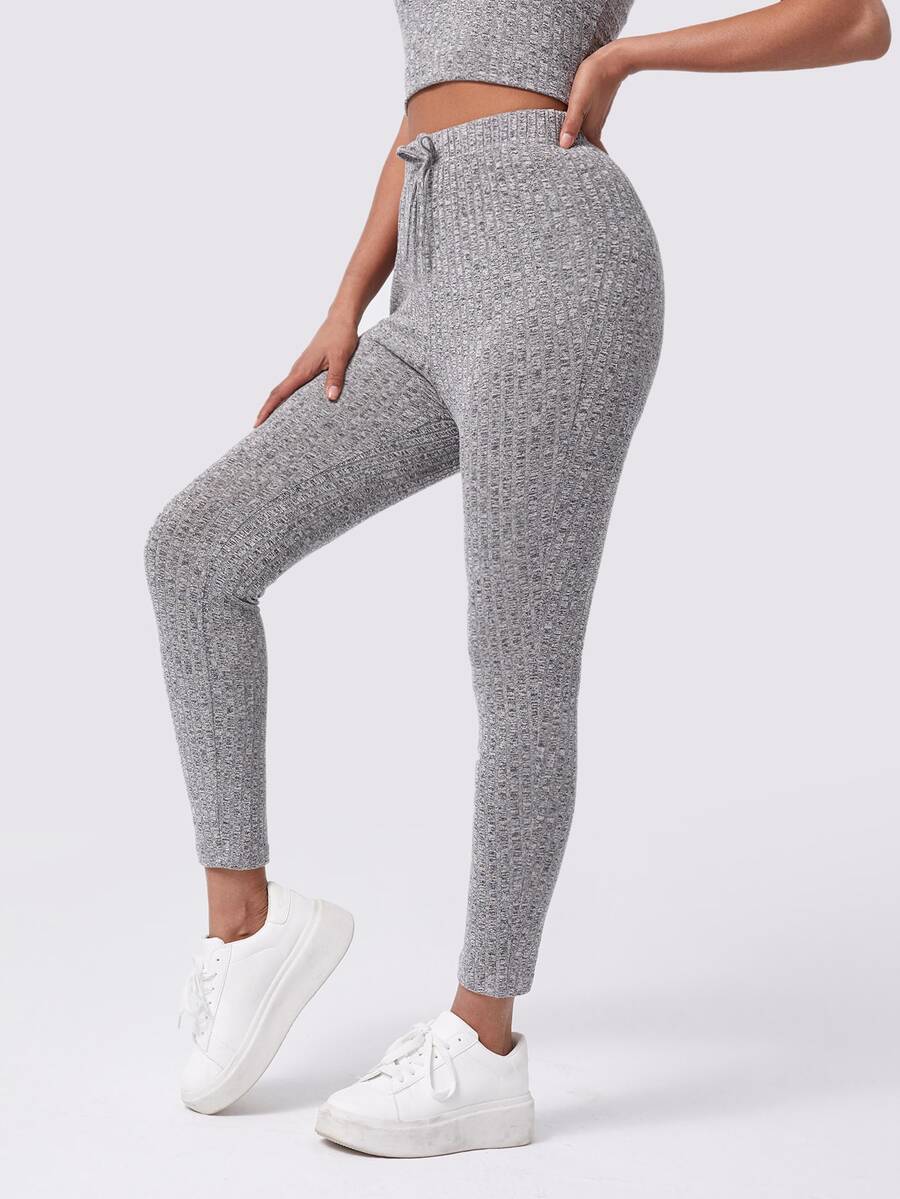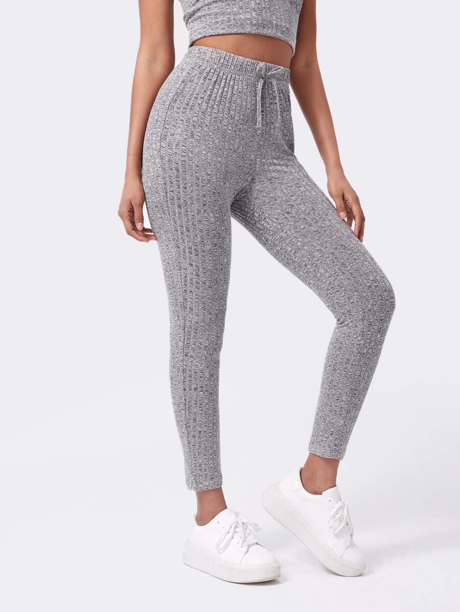 Leggings a costine con nodo monocolore