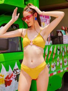 Bikini a vita V con anello solido collegato