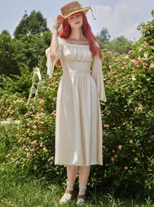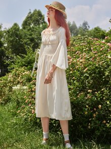 Fairycore Abiti monocolore bustino arricciato manica svasata