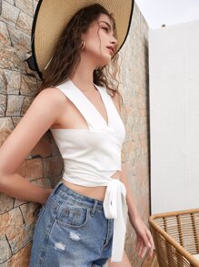Canotta monocolore nodo frontale a costine