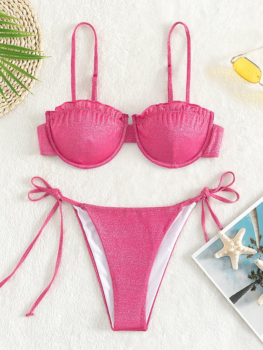 scintillante Set bikini con volant con ferretto Bra cami & Perizoma 2 pezzi Costume da bagno