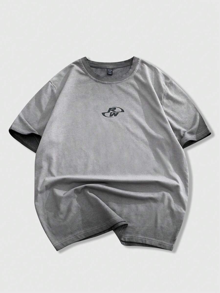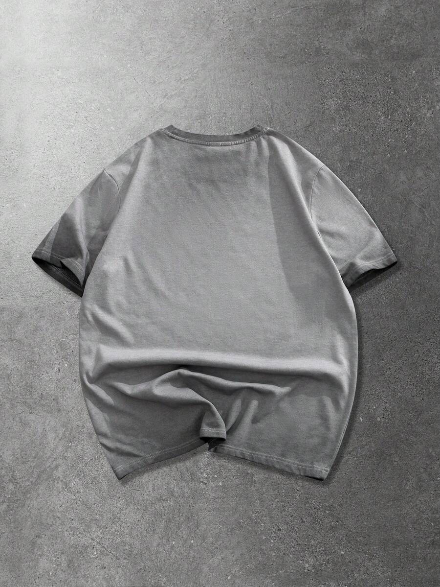 maglietta casual a maniche corte da uomo con stampa grafica e collo rotondo