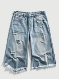 Street Life Pantaloni capri in denim con tasche e decorazioni strappate, vestibilità ampia per uomo