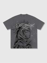 Grunge Punk T-shirt casual da uomo a maniche corte, con stampa di ritratto e lettera, per l'estate