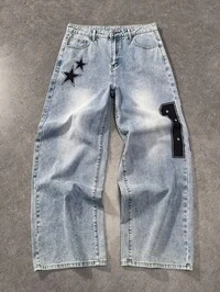 Street Life Jeans in denim consumato con stampa a stelle e tasche cargo per uomo