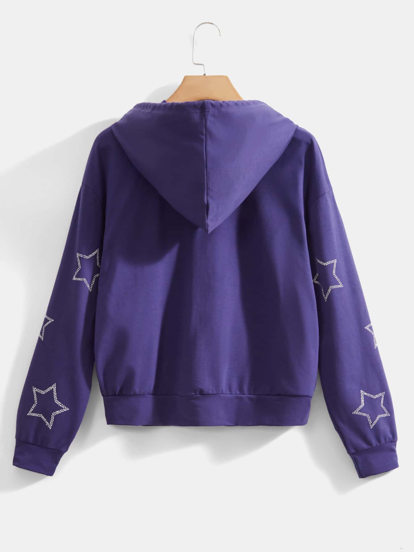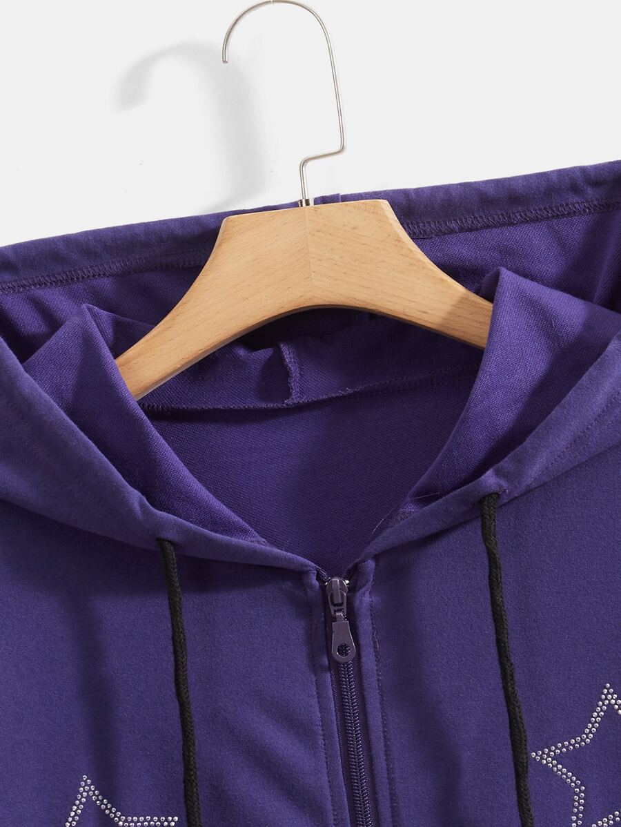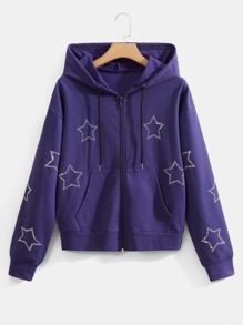 Felpa con cappuccio stella con strass con zip con coulisse