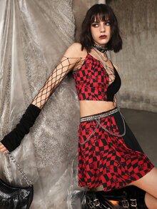 stella e con stampa quadri Top corto con bretelle sottile & Gonna Set senza mesh e Cinture