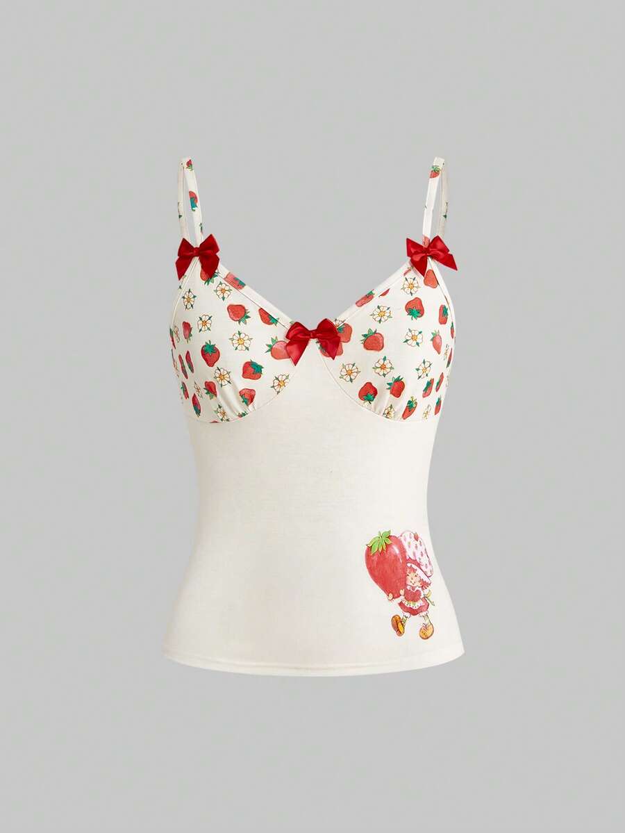 Canotta da donna aderente con stampa di fragole e fiori, in collaborazione con Strawberry Crisp