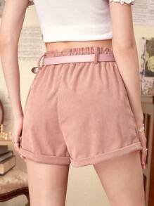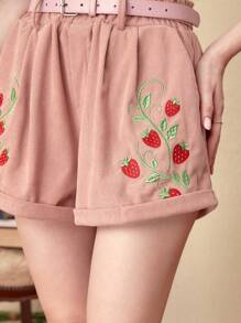 Kawaii Shorts con ricamo fragola con cintura di velluto a coste