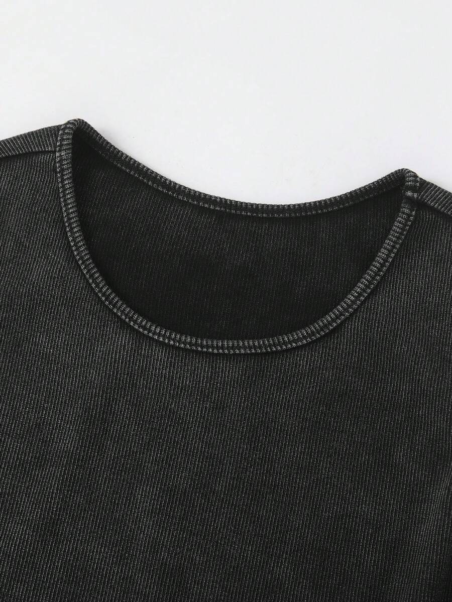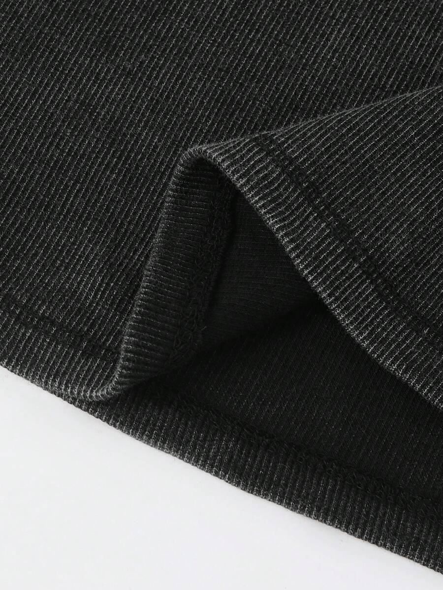 Top aderente con stampa slogan e volto cupo, stile urban fashion