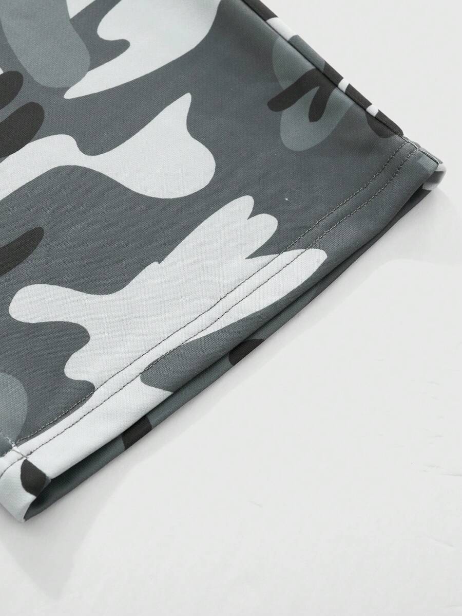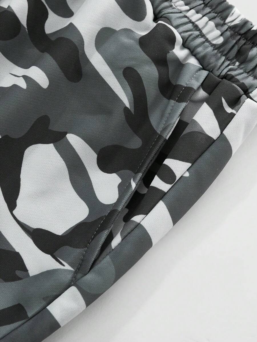 Street Life 2 pezzi Set di tuta da uomo con felpa e pantaloni con stampa mimetica e numerale