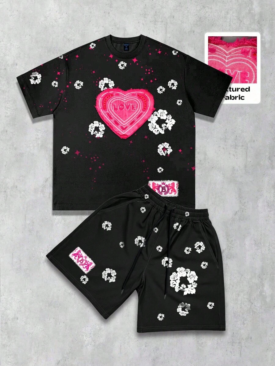 Street Life 2 pezzi set di abbigliamento uomo con maniche corte ricamate, adatto per uso quotidiano in primavera e estate