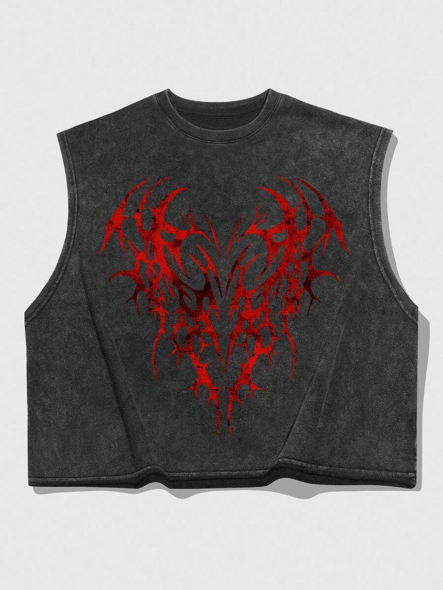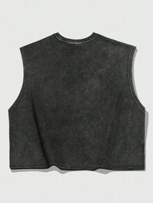 Street Life Top corto alla moda con scollo rotondo e design lavato con acido, estivo