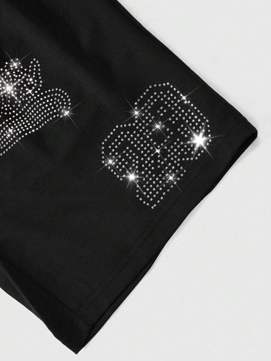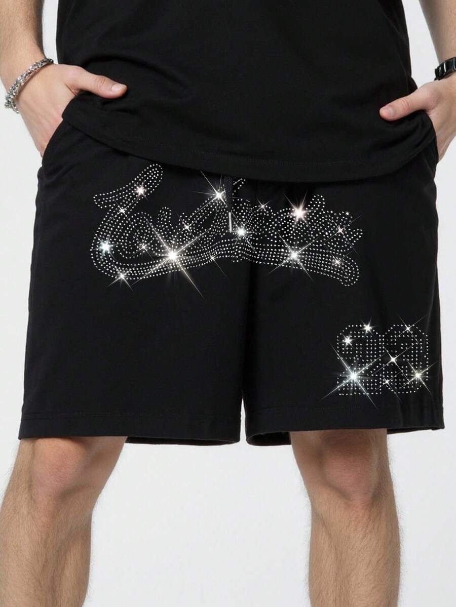 Street Life Pantaloncini sportivi casual da uomo con stampa di strass neri e marchio in stile inglese
