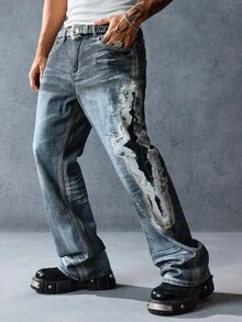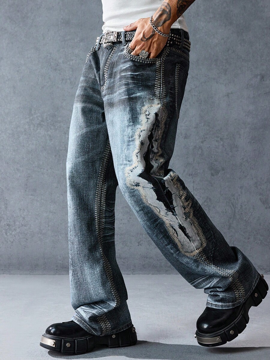 Street Life Jeans da uomo casual alla moda con bottoni, gamba affusolata
