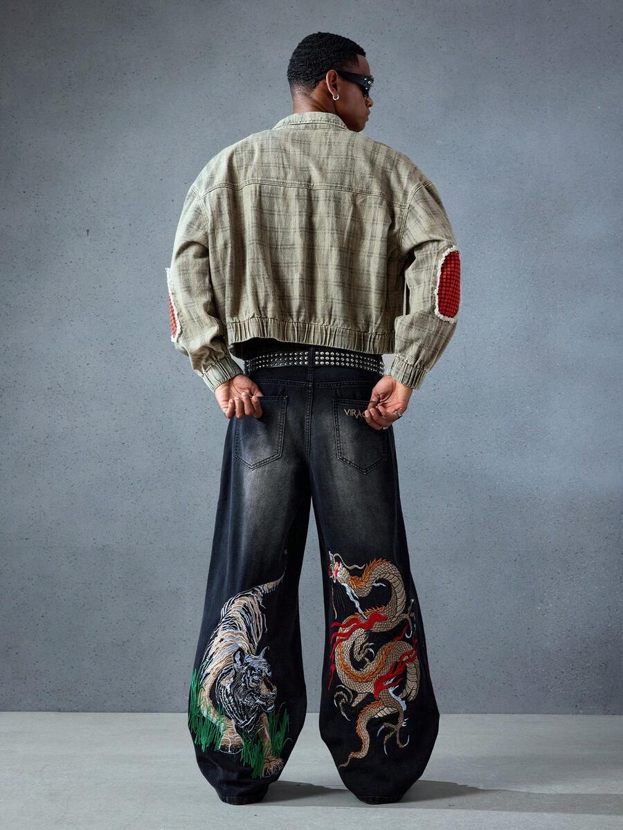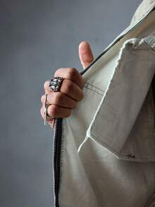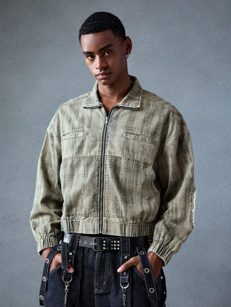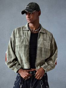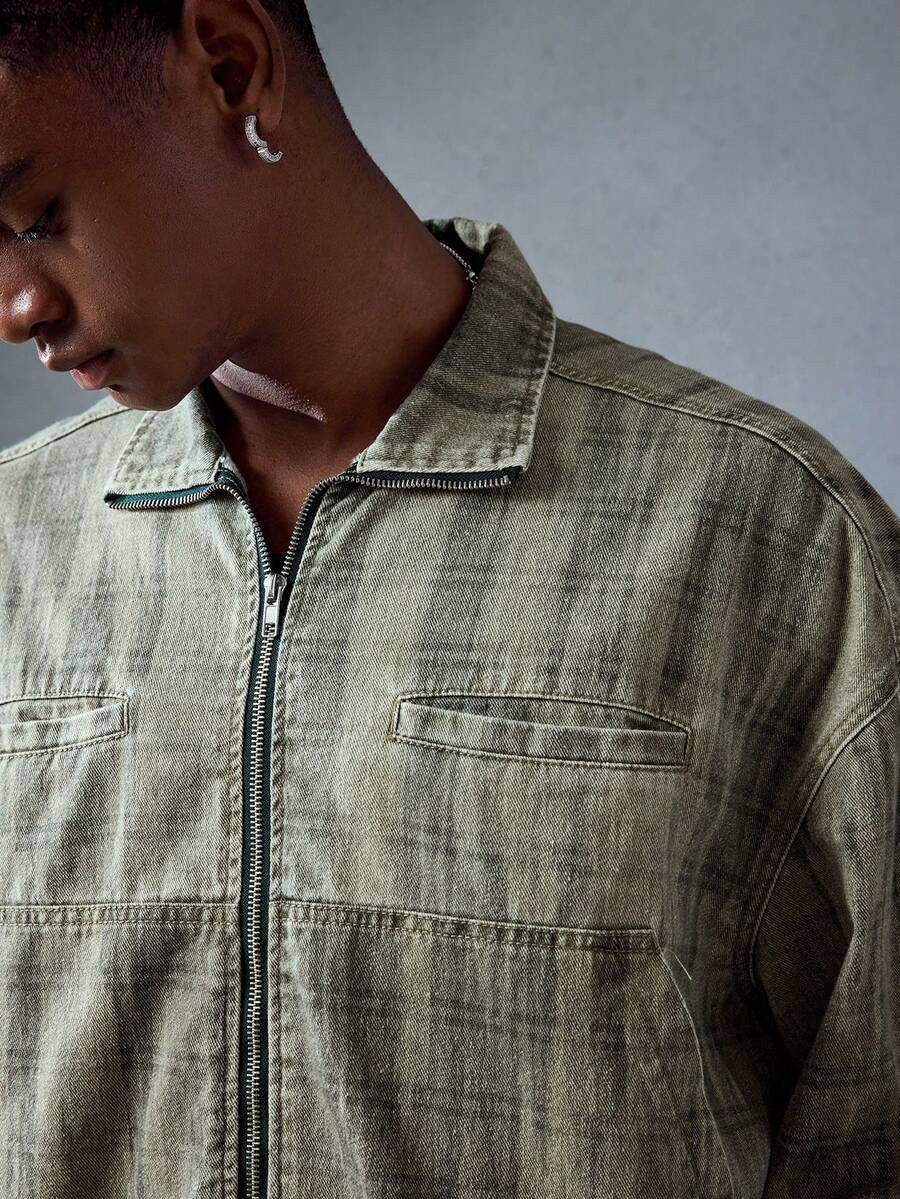 Street Life Giacca di jeans casual e ampia con chiusura lampo e maniche lunghe, stile da strada per uomo