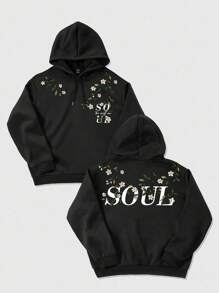 Street Life Felpa casual alla moda da uomo senza tasche, con stampa floreale, colore nero, adatta per l'inverno
