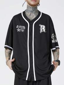 Street Life Ragazzi Camicia con grafica lettera bordo a contrasto