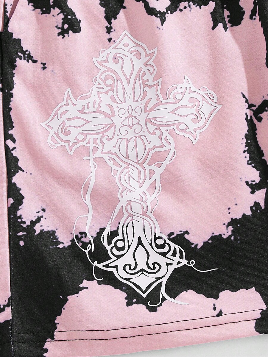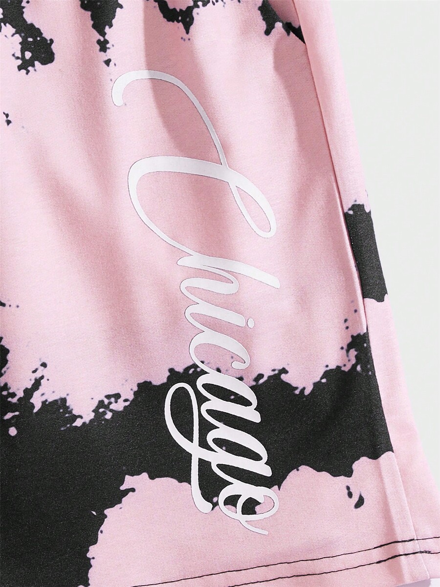 Street Life Ragazzi Shorts tie dye incrociato & con grafica lettera con coulisse a vita
