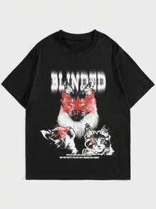 Street Life Uomo Maglietta con grafica gatto & slogan