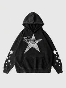 Street Life Felpa con cappuccio casual stampata con coulisse da uomo per uso quotidiano