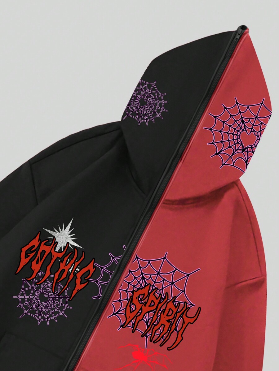 Street Life Uomo Felpa con cappuccio alla moda hip hop colorblock ragnatela motivo zip design sciolto