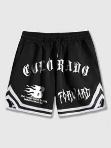 Street Life Pantaloncini da basket da uomo con grafica a lettere e bordi a righe, con vita con laccio