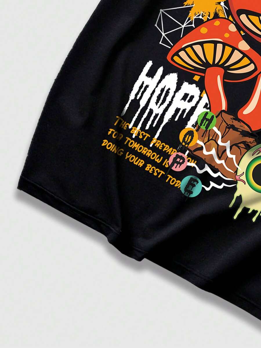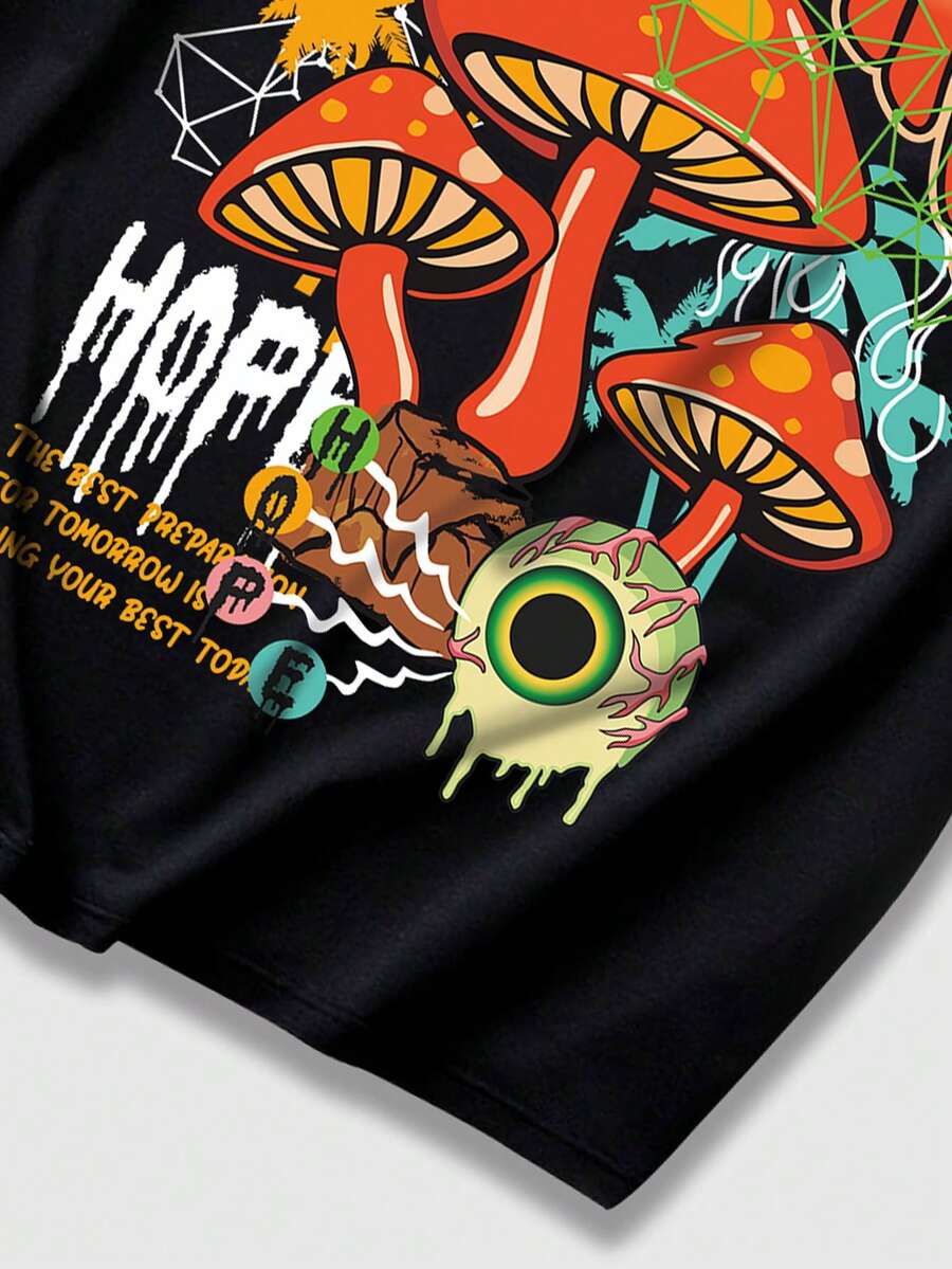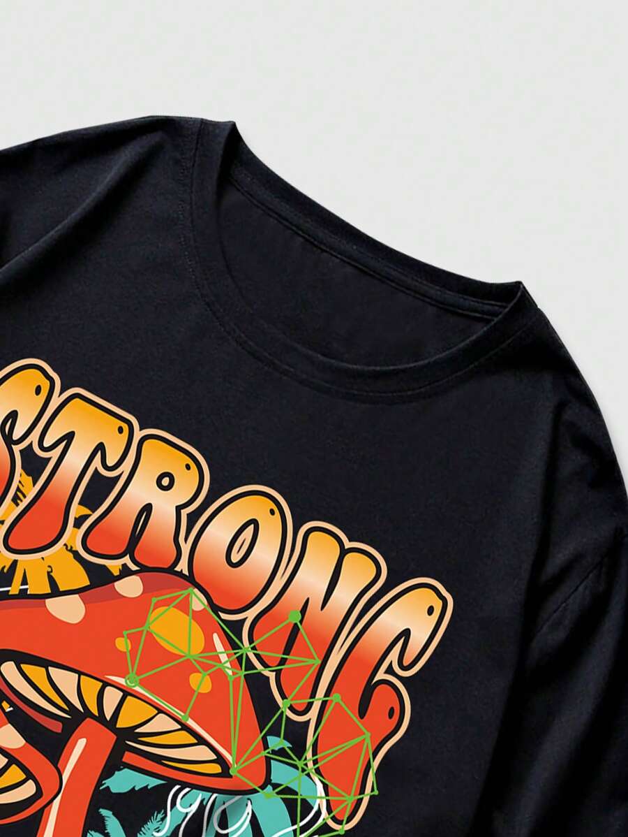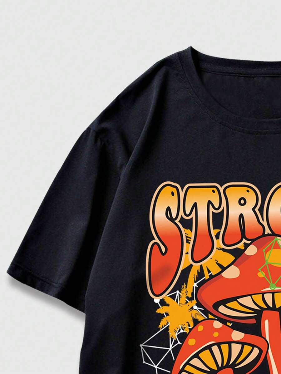 Street Life Maglietta con grafica di funghi e slogan per uomo, per la scuola