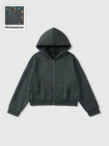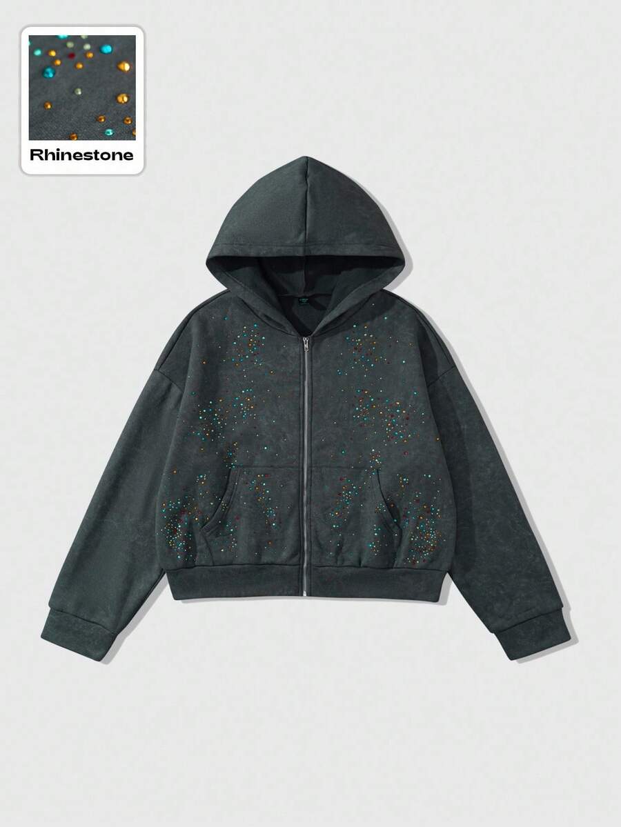 Street Life Felpa con cappuccio e chiusura lampo uomo, stile di strada, con diamanti scintillanti, autunnale