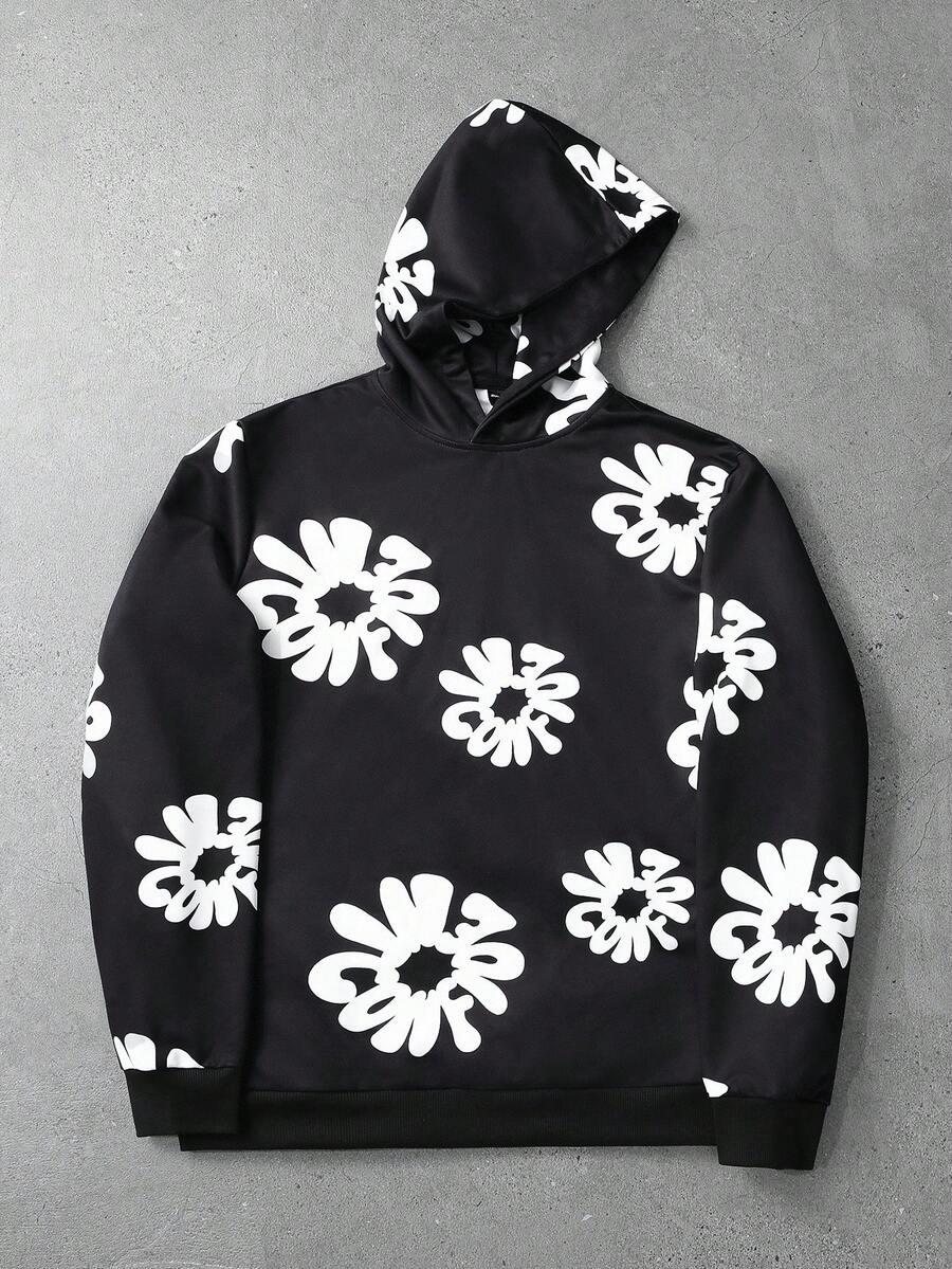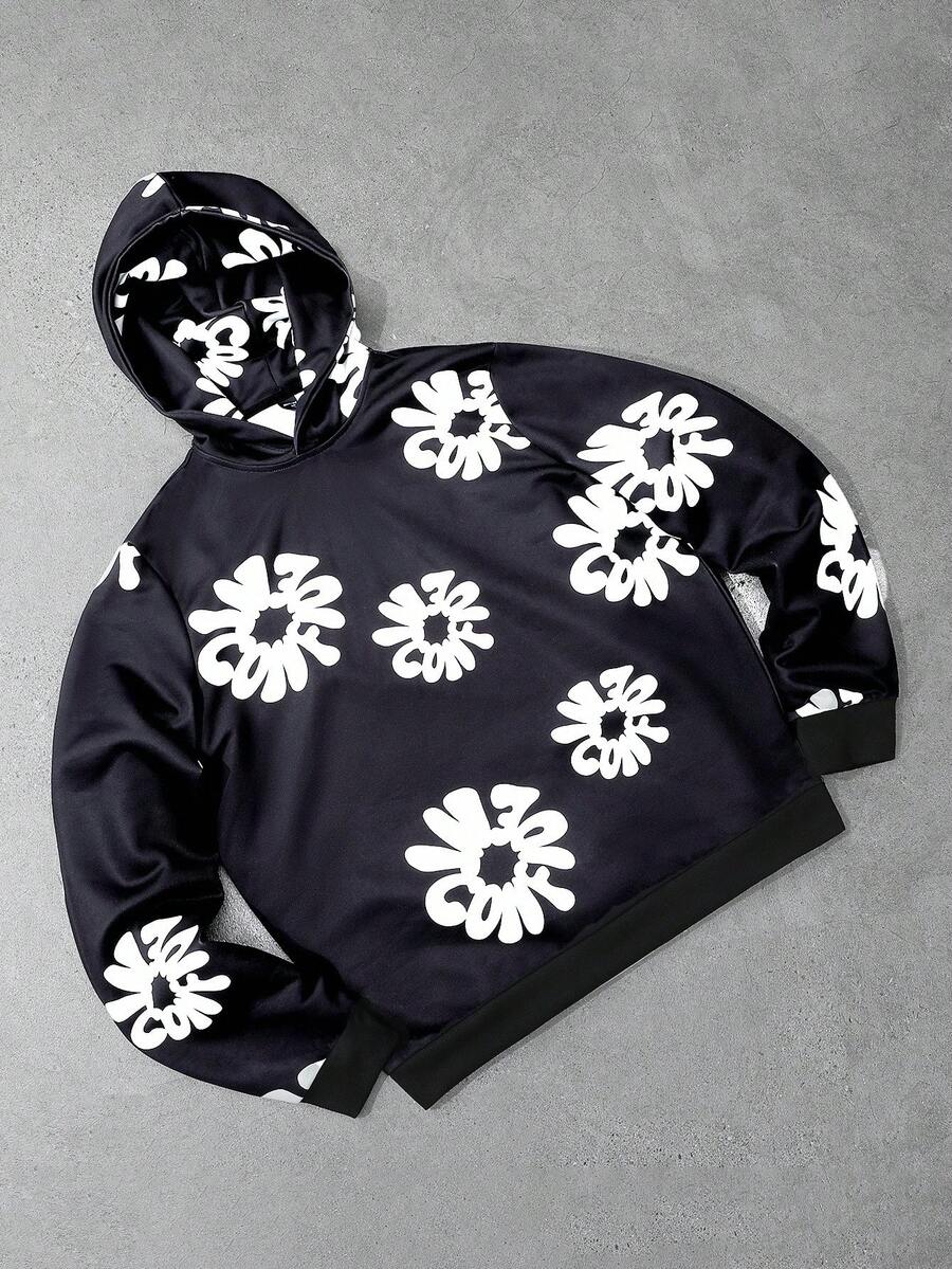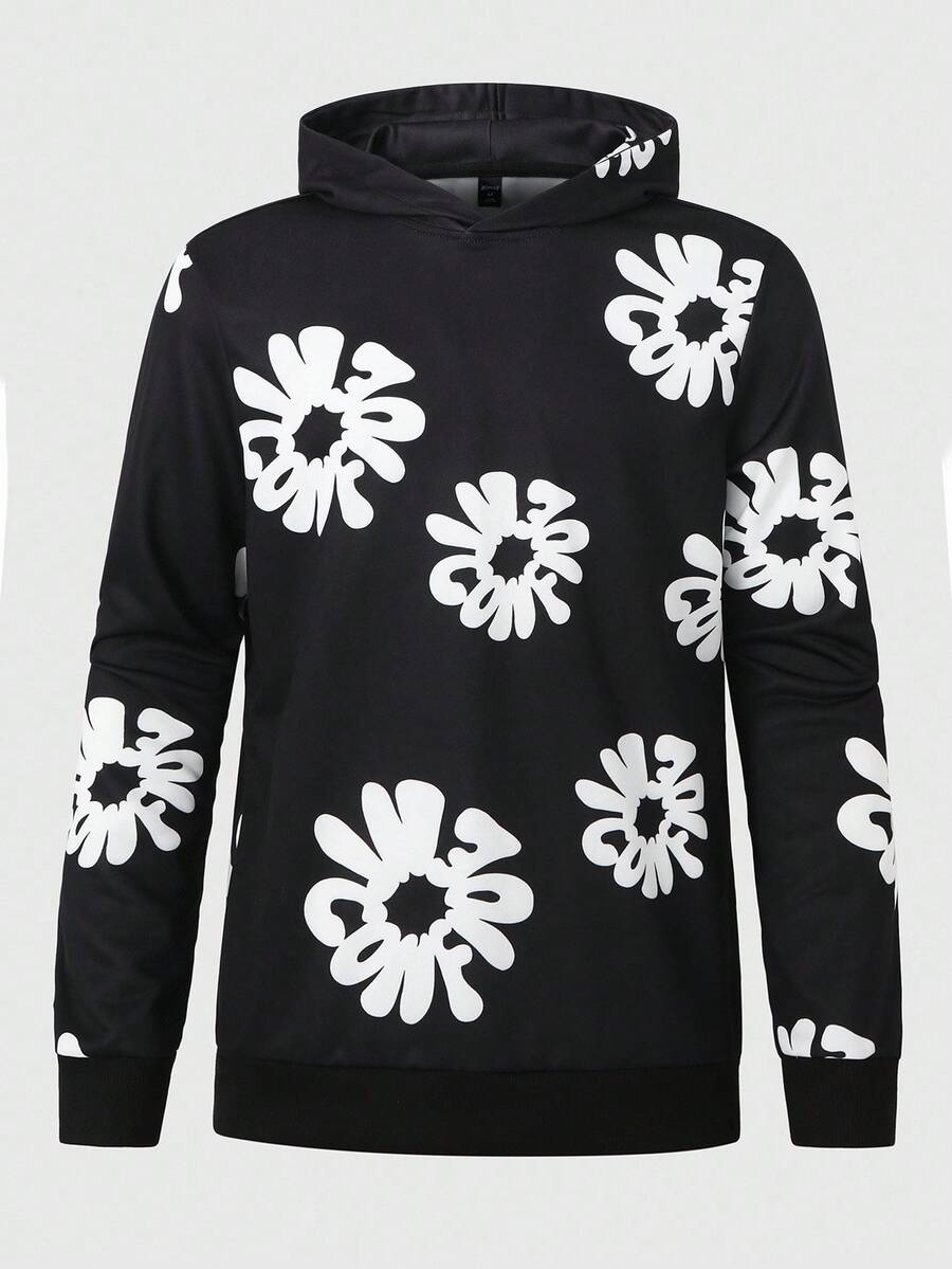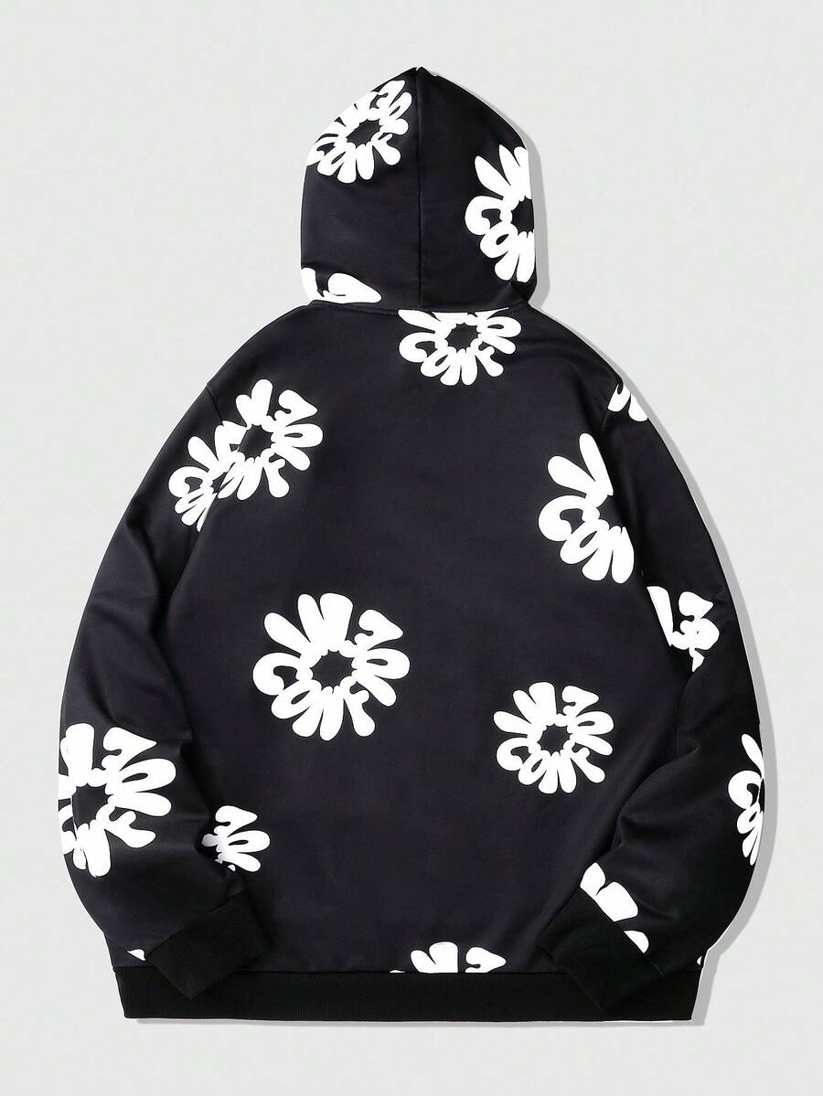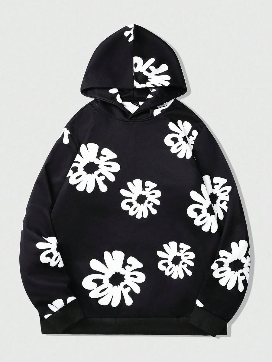 Street Life Felpa con cappuccio casual da uomo con stampa a lettere, stile di strada, manica lunga, autunno